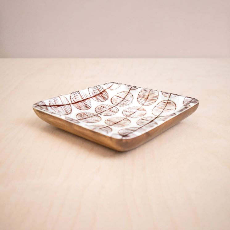 Acacia wood and capiz shells combine forces to create this stunning unique catchall to store your trinkets in a fun way. Perfect for the coffee table or as a jewelry dish on the vanity. Handcrafted by artisans in the Philippines in a fair trade environment.