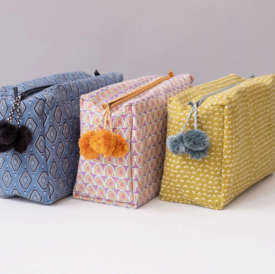 Hand-Blocked Printed Cotton Toiletry/Cosmetic Bags - Cam Golden