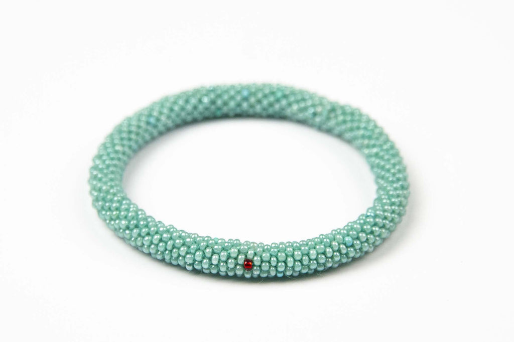 This group consists of one teal/silver chevron plus one solid teal colored glass beaded bracelet. Each bracelet is one of a kind and fair trade.