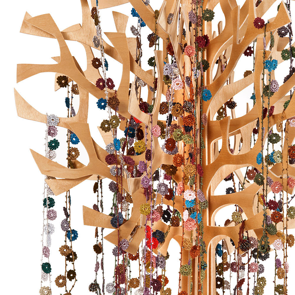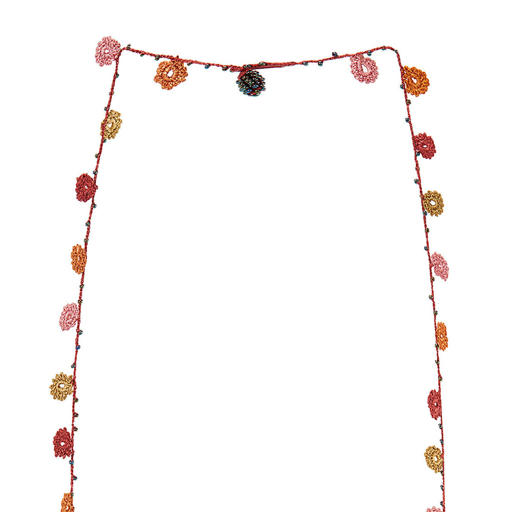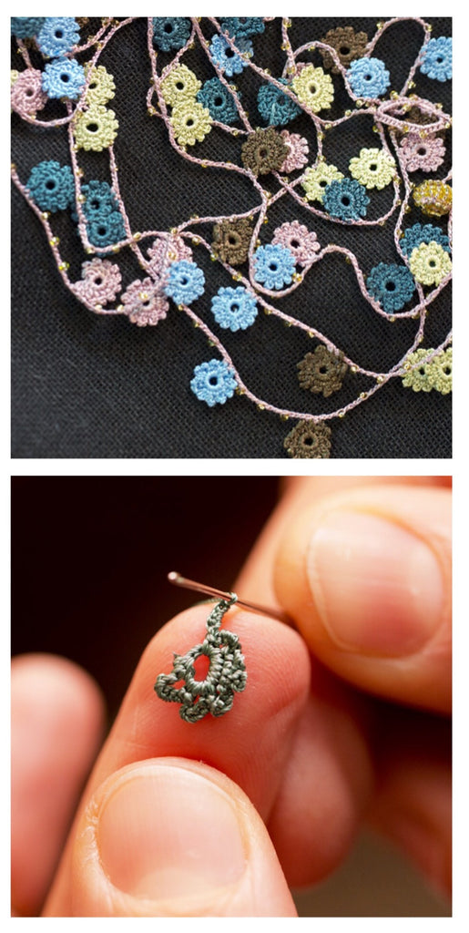 The crochet necklaces are made in central Anatolia, Turkey by one artist that has an amazing dexterity with the finest crochet needle that exists (some people refer to it as tattering). The resounding success that she has had in the USA, since Suzani started ordering her necklaces, has pushed her into teaching her skill and art form to other women in her community. Her sense of color is remarkable and the workmanship is so good, that some people ask if they were cut outs from a fabric.