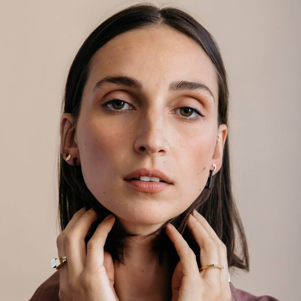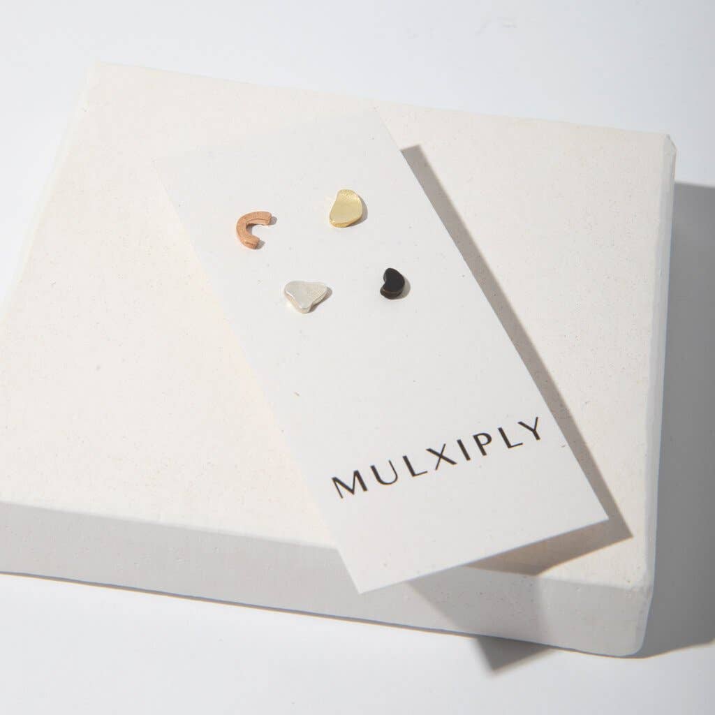 Mix and match these tiny geometric stud earrings inspired by Italian Terrazzo. Four different metals and shapes for whatever mood you're in. Ideal for the modern minimalist, the perfect addition to any capsule wardrobe.